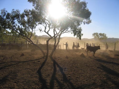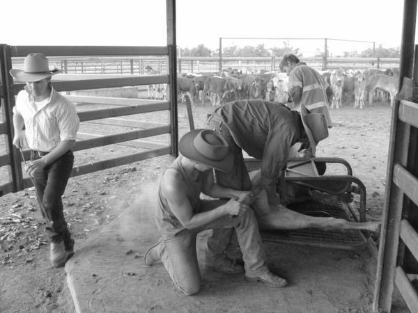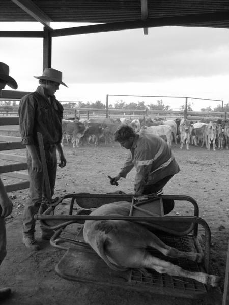 Premier jour. Rencontre de la famille entière, les autres jackaroos, les enfants. On est une vingtaine à travailler dans les yards. Les 700 vaches d’aujourd’hui vont être séparées selon l’âge, les nouveaux nés vont être marqués. Je sors mon appareil photo deux minutes pour capturer le spectacle qui sera mon quotidien désormais…