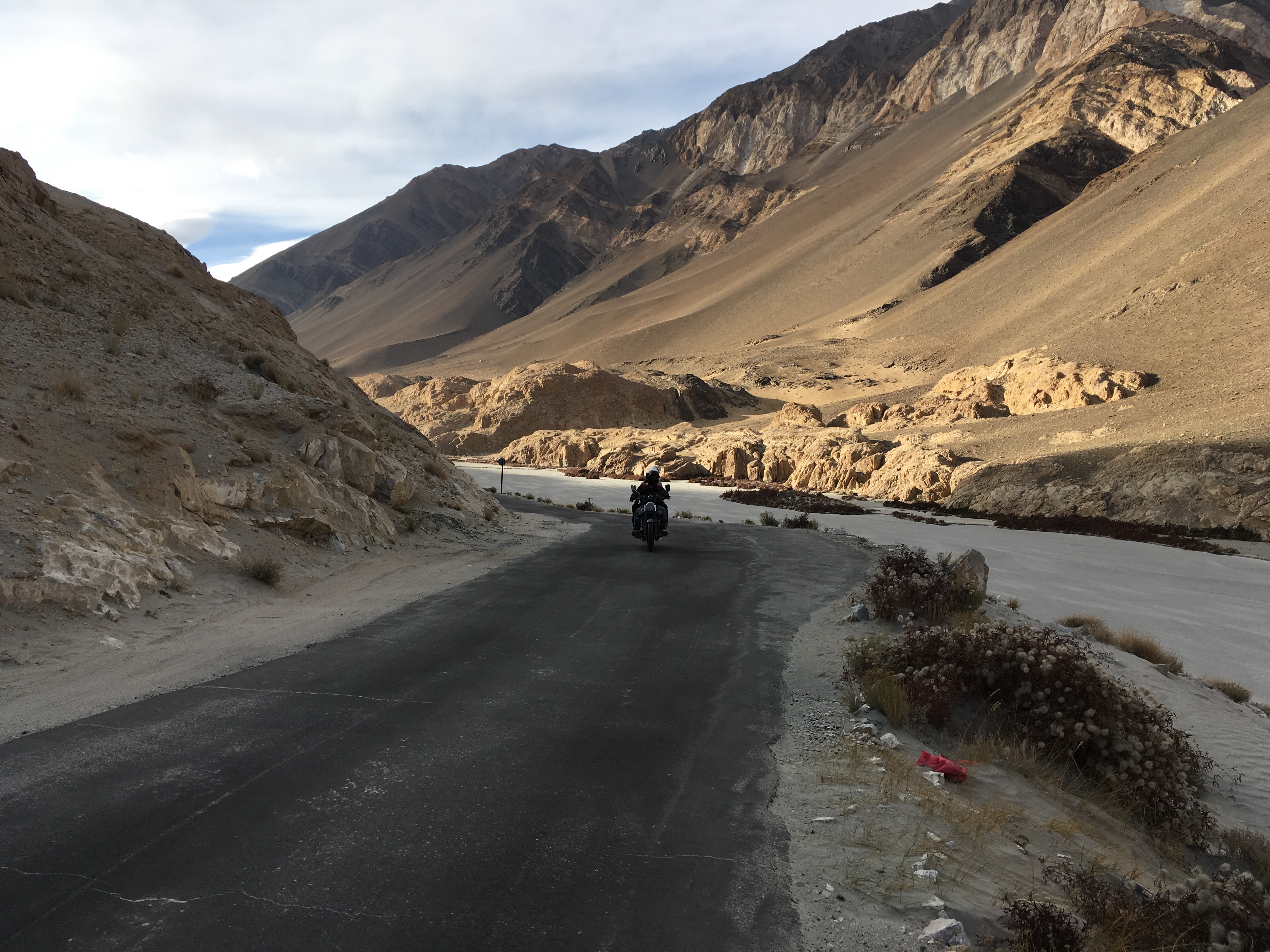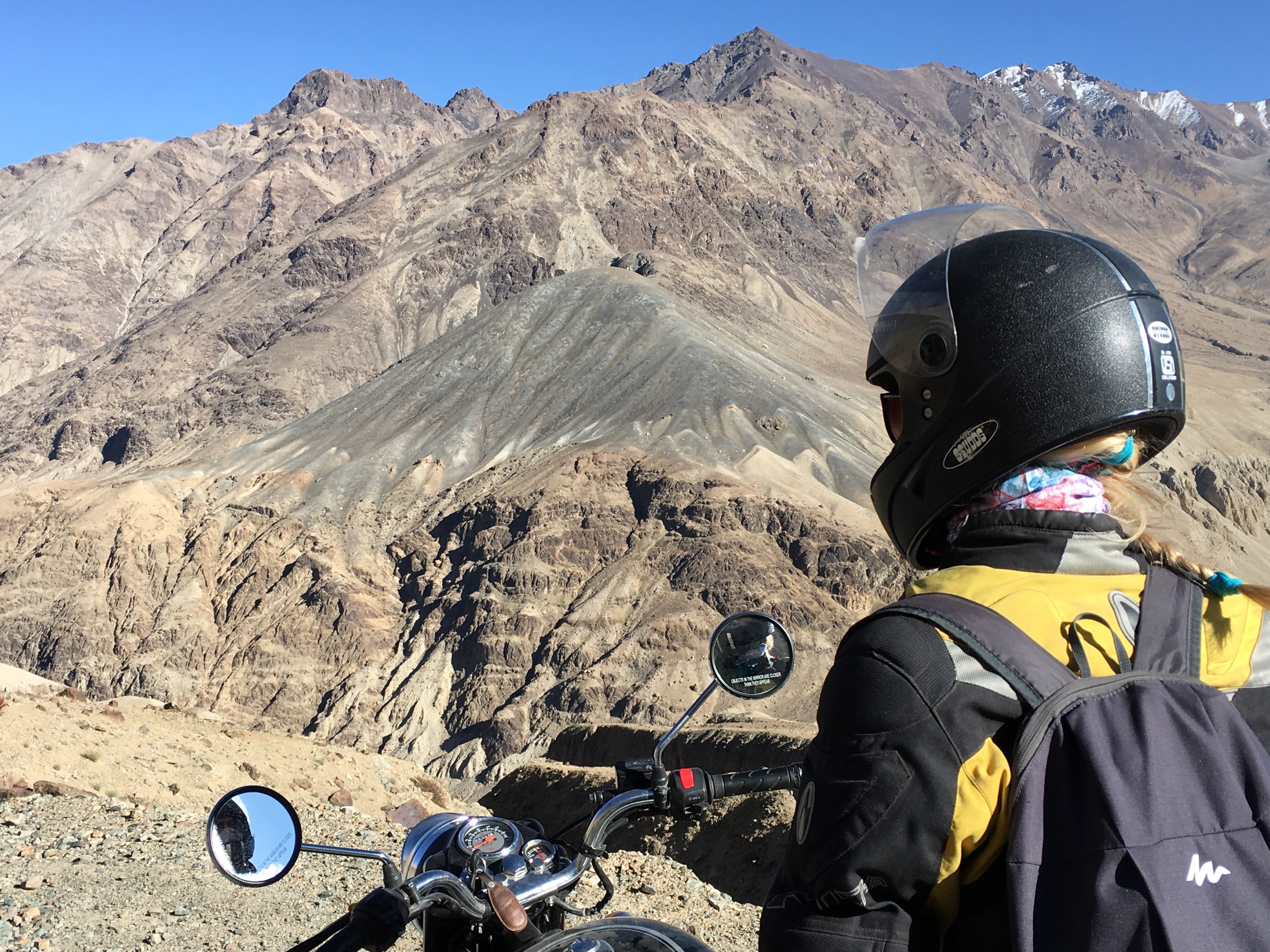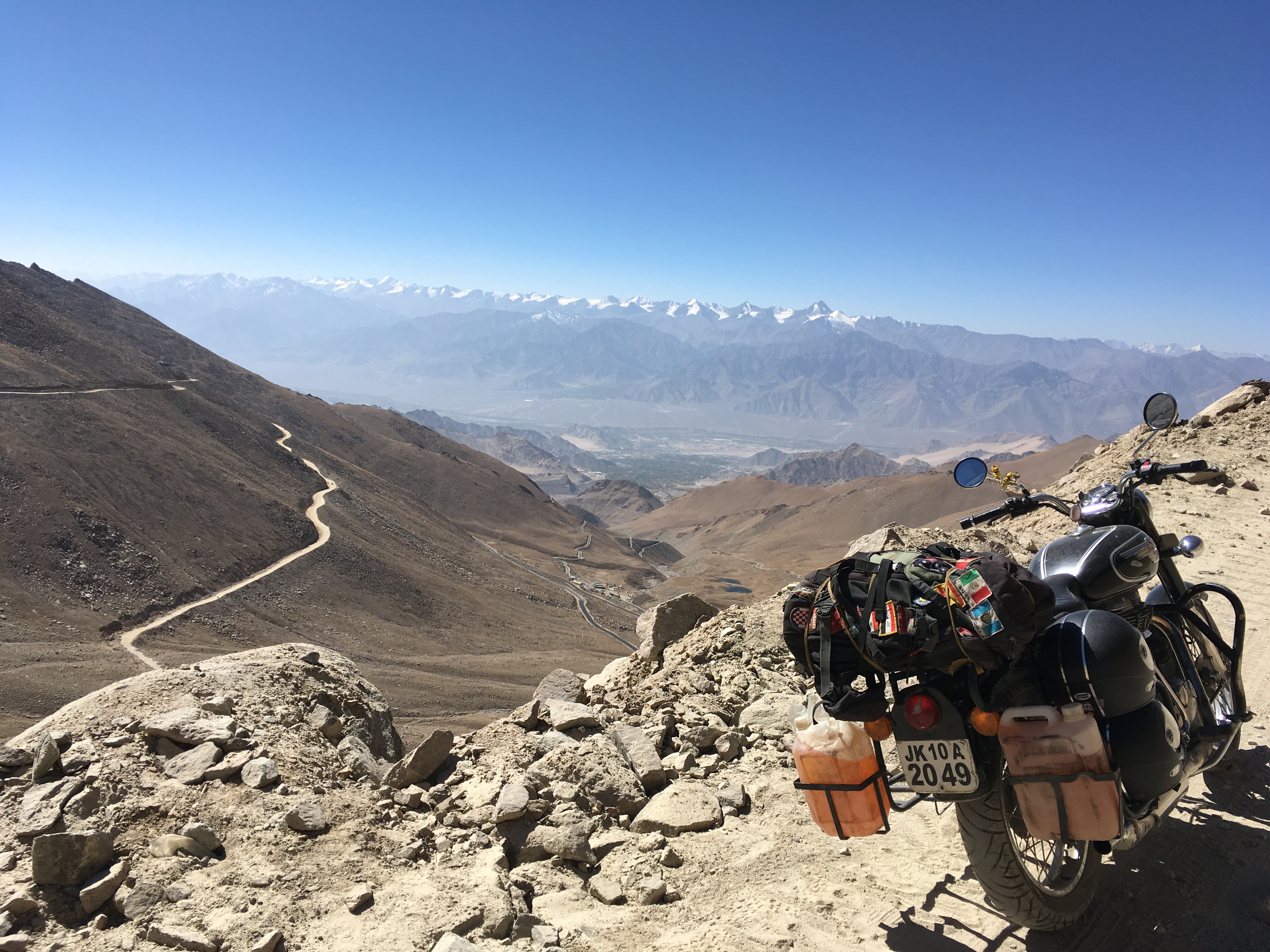 (FR) 3 jours en immersion, 500 km à se secouer les os sur les routes les plus élevées ( max 5600m alt.) pour découvrir quoi ? …le désert de Hunder, les vues vertigineuses de la vallée de Nubra, et toutes les teintes de bleu du lac Salé Pangong. A ces altitudes, la compression du monocylindre est si faible qu’elle rappelle le peu d’oxygène qui circule dans nos poumons. Comme nous, la Bullet va devoir puiser dans toutes ses ressources disponibles pour passer les sommets, franchir les rivières et négocier les pistes de rocaille et de sable. Challenge accepté !