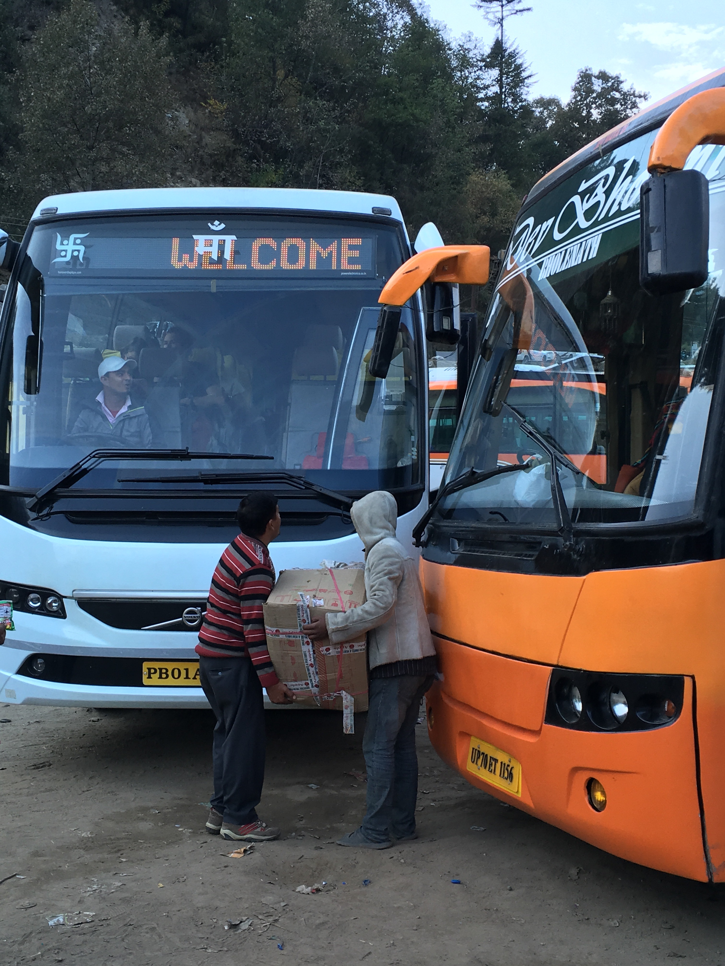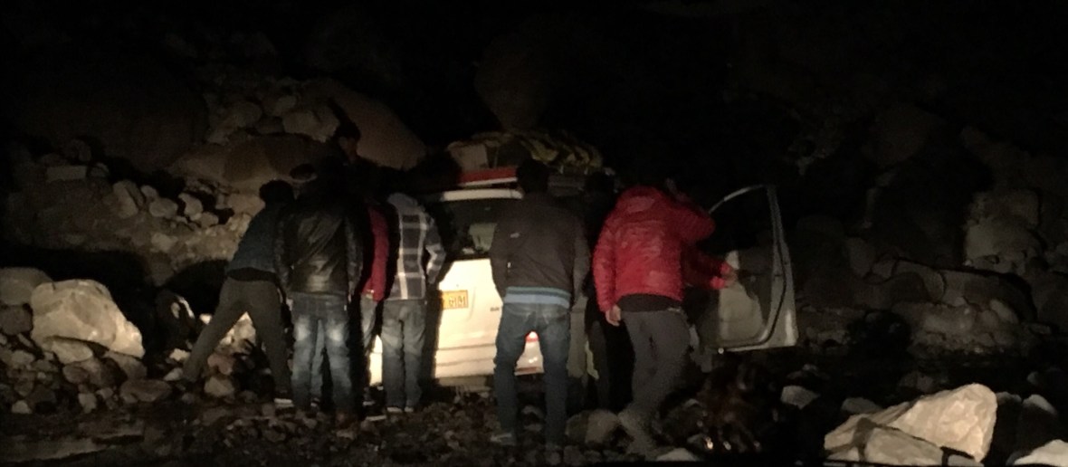 1h du matin, une voiture coincée dans un torrent bloque la route (-12degres, 5000m alt.)et sera finalement tirée par un bus.