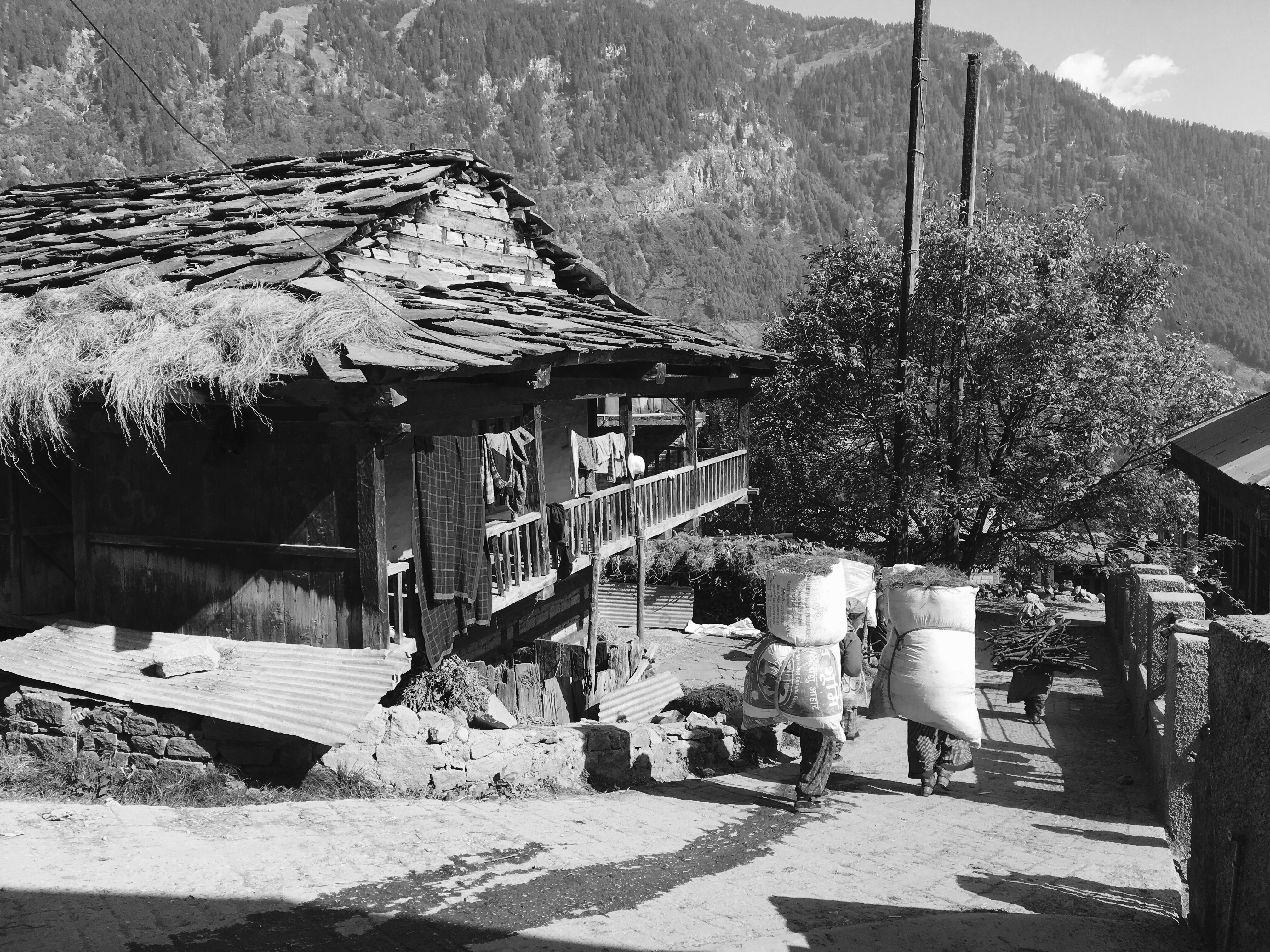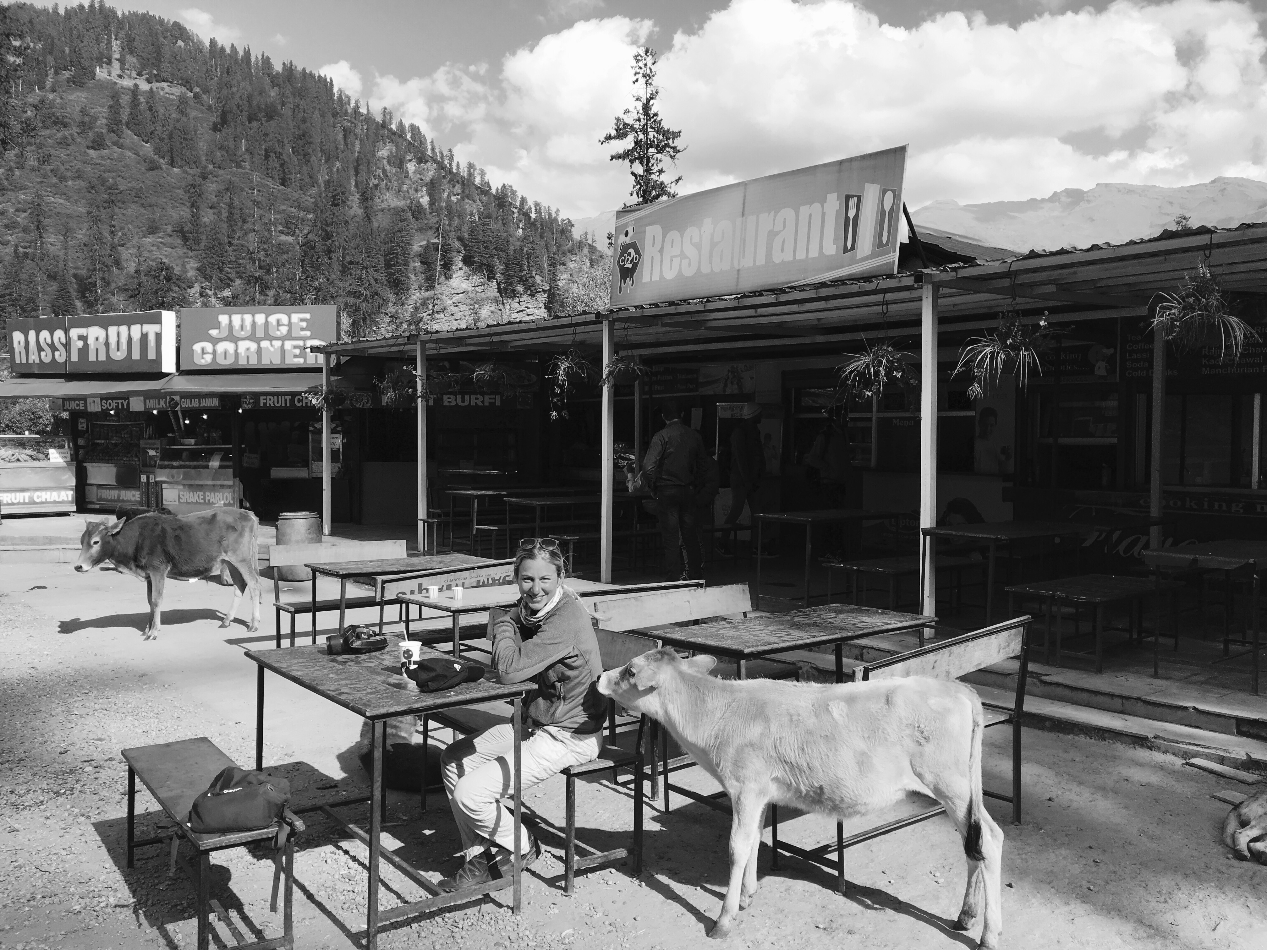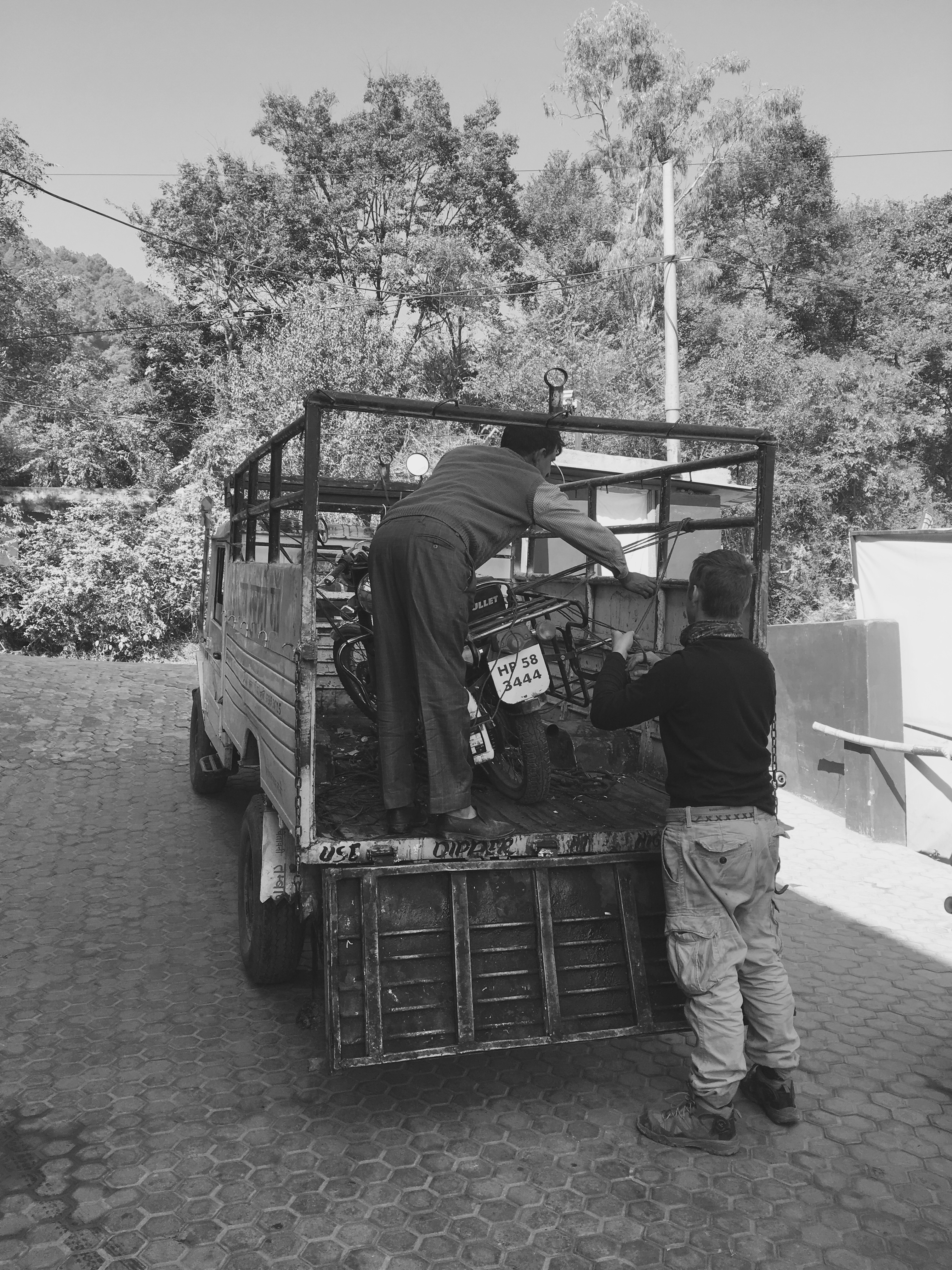 Parmi les femmes les plus âgées du village, elle descend tous les jours au marché, ici pour vendre des épinards. Accompagnée de sa vache qu’elle ne quitte pas évidemment 🙂Premiers tours de roues à moto, première pause, sur l’une des seules lignes droites de notre péripleEn demandant le chemin, nous tombons sur ce paysan ladakhi. Rencontre.L’efficacité au LadakhArrivée à Manali, dans une rue animée où la cuisine est ouverte. Ambiance.En prenant le thé chez une famille qui a la vue sur la route.Moment spécial au temple du Lac Prashar, tenant sur sa structure en bois décoré.« Avoid Mandi on October 18th, the prime minister is coming in town! »Les bouchons du matin en allant au travail, à JeoriAprès une crevaison. Hospitalité indienne.Singe perché! »Après une crevaison, la suite.Notre Resto de rue préféré dans les rues de Manali, masalas en préparationAu marché de ManaliStationnement des chevauxAu restaurant. C’est toi qui invites ?Les paysans descendent dans le contrebas de Manali avec leur cargaison.Google translation version animaux