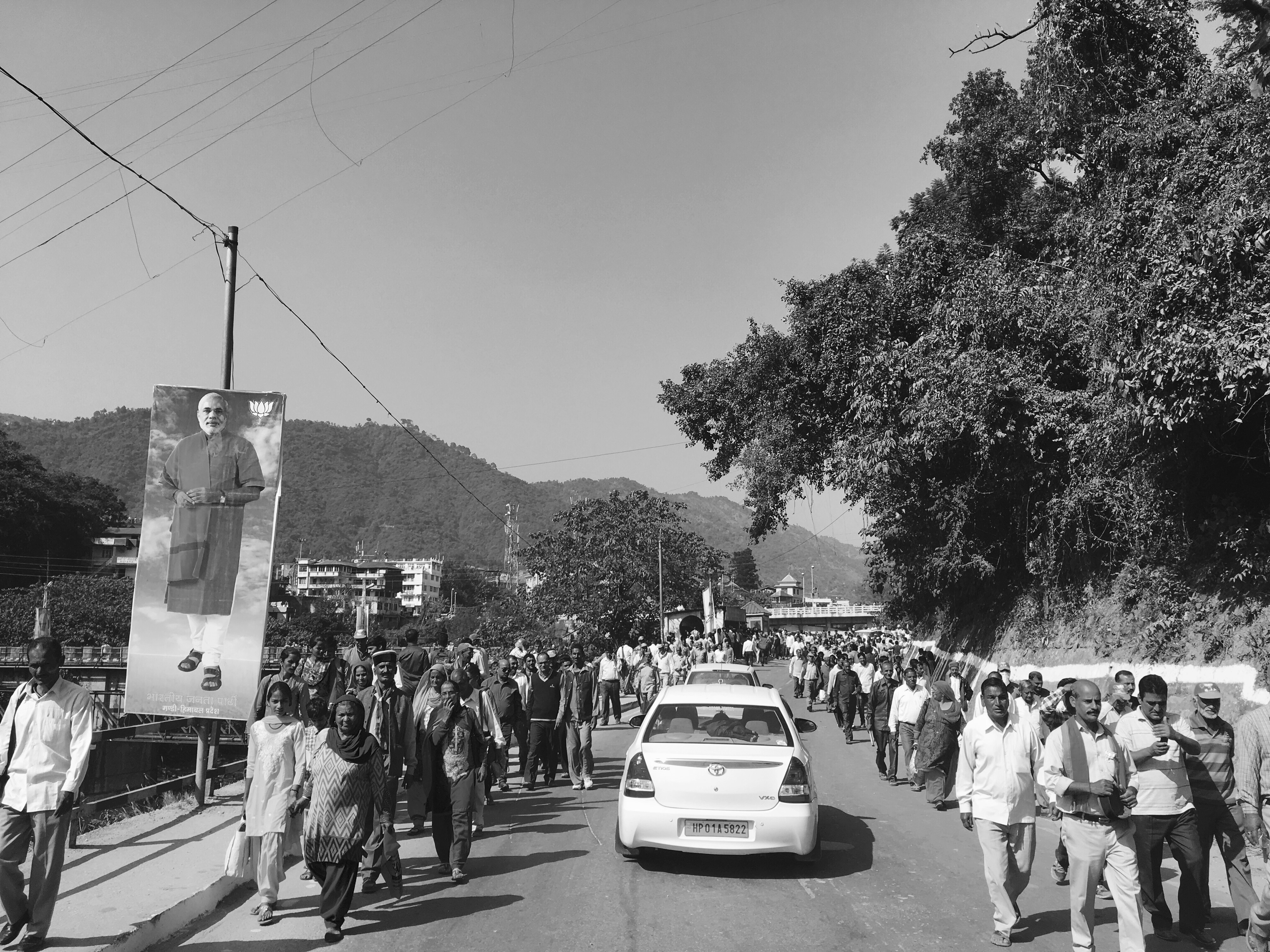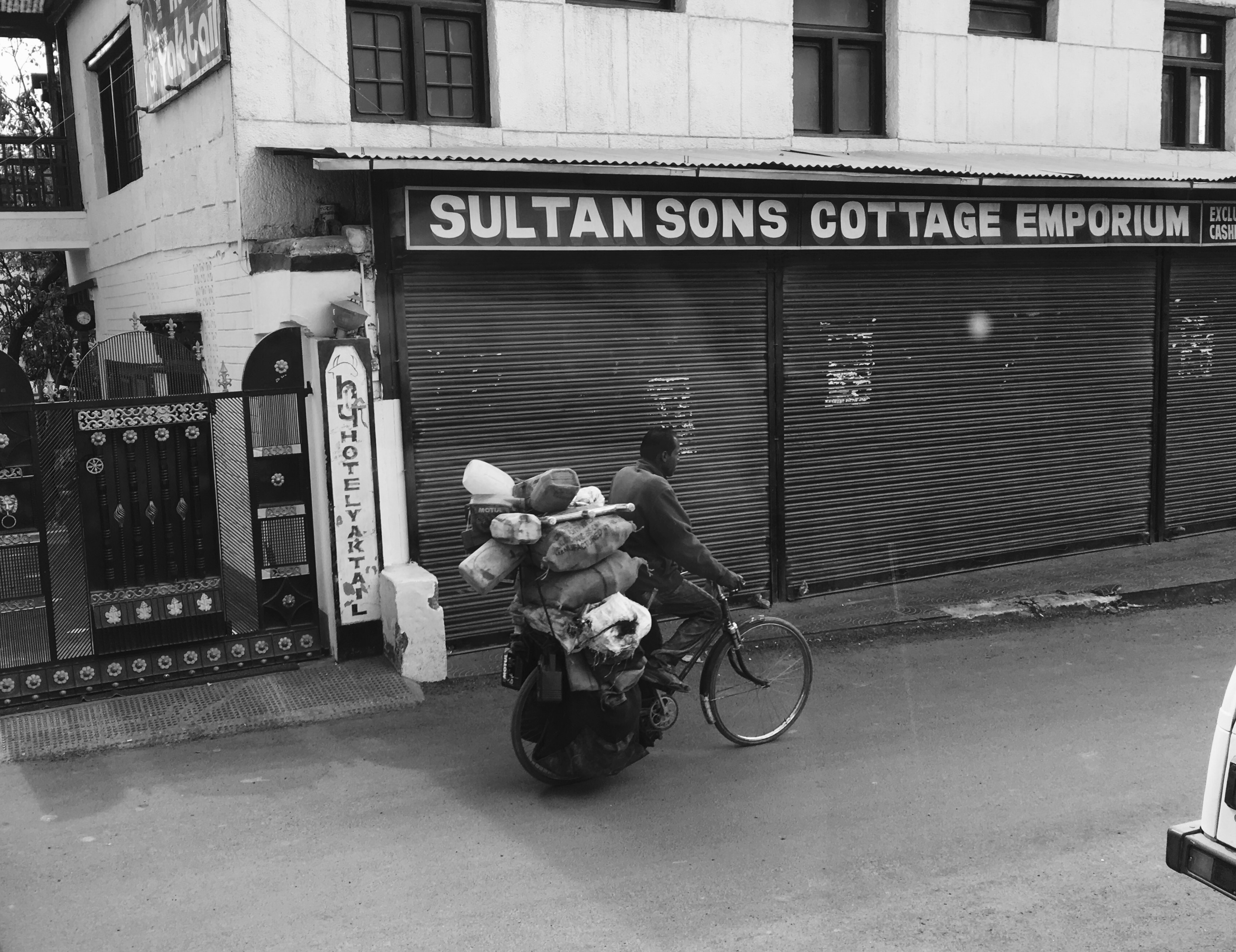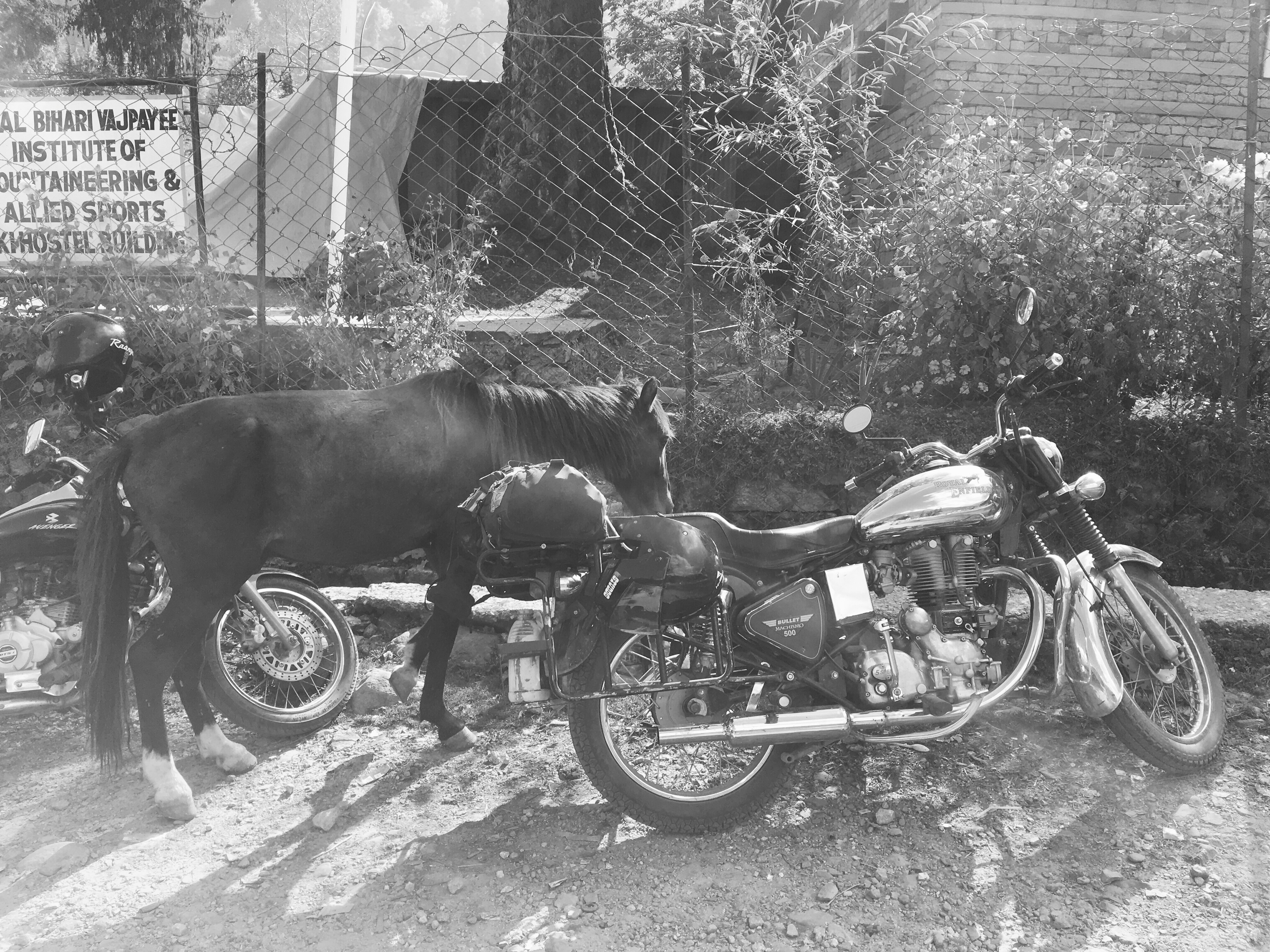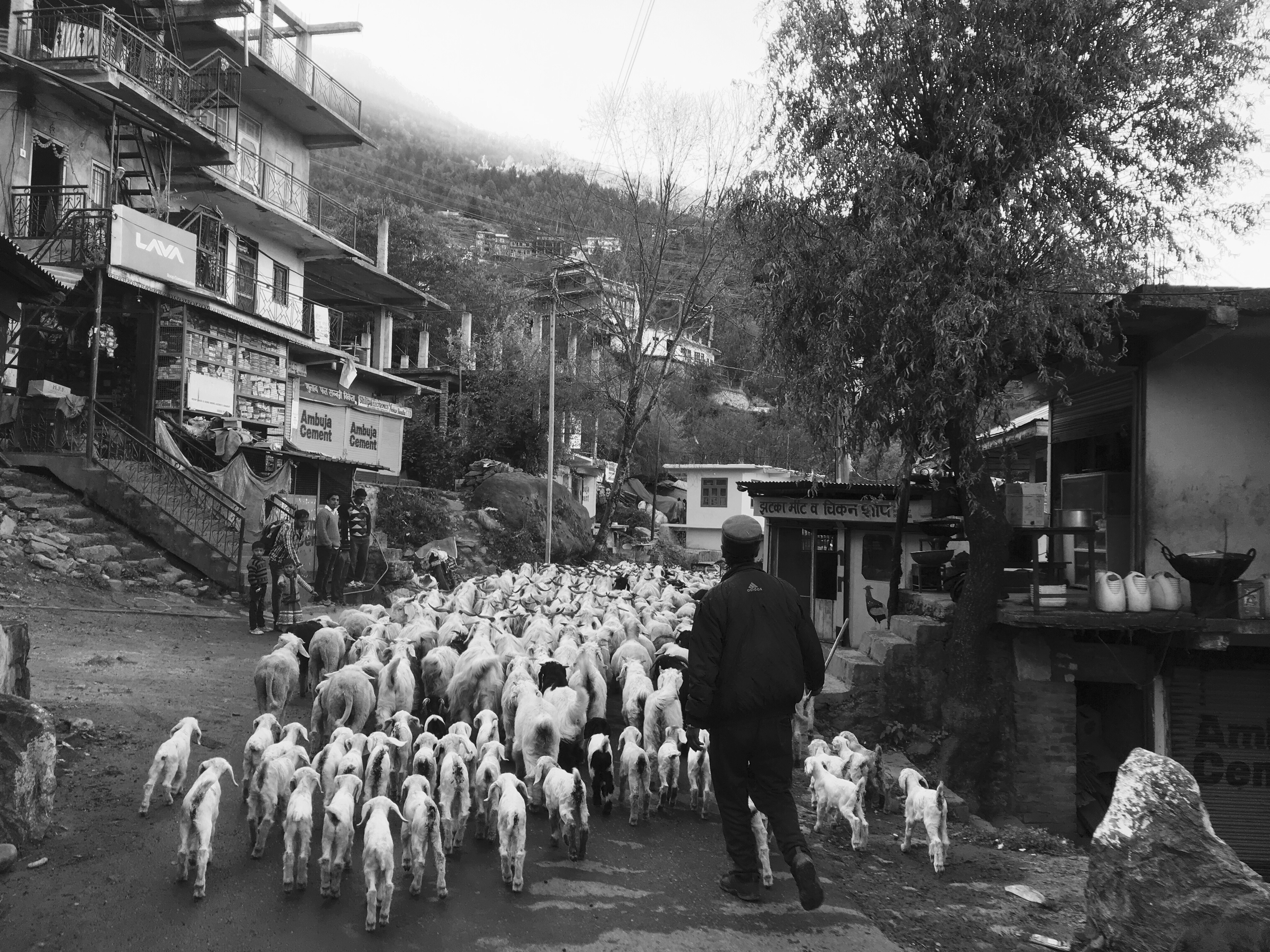 Parmi les femmes les plus âgées du village, elle descend tous les jours au marché, ici pour vendre des épinards. Accompagnée de sa vache qu’elle ne quitte pas évidemment 🙂Premiers tours de roues à moto, première pause, sur l’une des seules lignes droites de notre péripleEn demandant le chemin, nous tombons sur ce paysan ladakhi. Rencontre.L’efficacité au LadakhArrivée à Manali, dans une rue animée où la cuisine est ouverte. Ambiance.En prenant le thé chez une famille qui a la vue sur la route.Moment spécial au temple du Lac Prashar, tenant sur sa structure en bois décoré.« Avoid Mandi on October 18th, the prime minister is coming in town! »Les bouchons du matin en allant au travail, à JeoriAprès une crevaison. Hospitalité indienne.Singe perché! »Après une crevaison, la suite.Notre Resto de rue préféré dans les rues de Manali, masalas en préparationAu marché de ManaliStationnement des chevauxAu restaurant. C’est toi qui invites ?Les paysans descendent dans le contrebas de Manali avec leur cargaison.Google translation version animaux