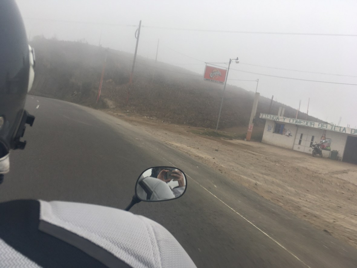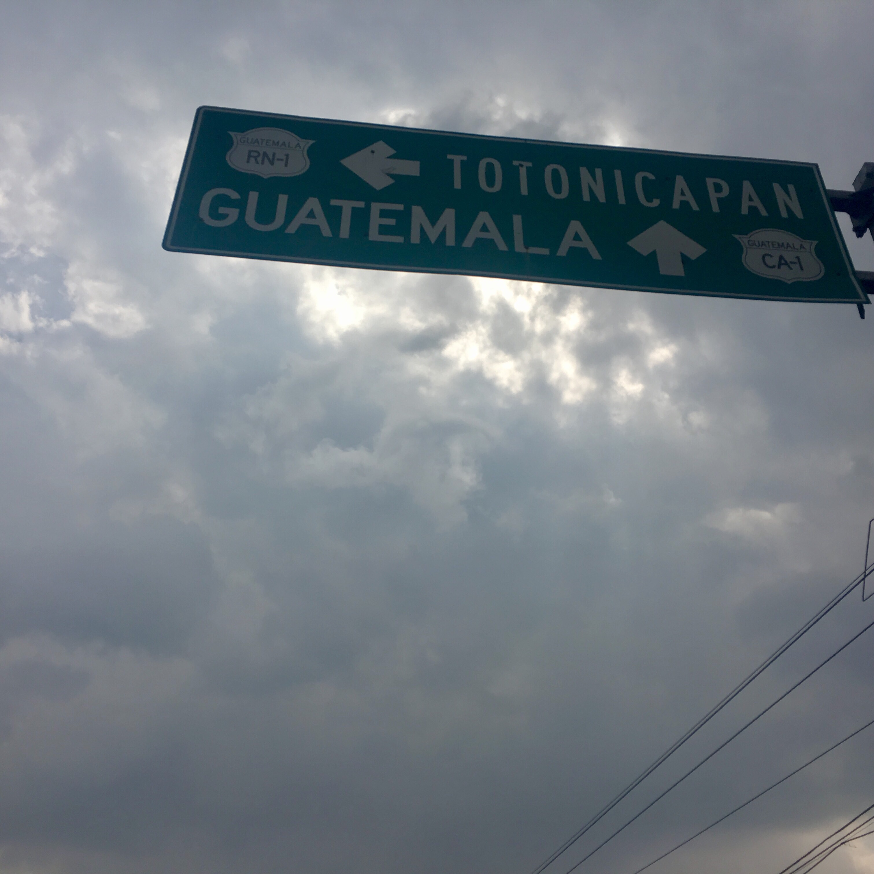 Guatemala dans les nuages. La fleche dit tout droit mais sans compter les centaines de virages.đŹđ§ When we decide to travel out of Mexico, it is both to keep south and test that all the paperwork for overlanding are ok. It was a huge work and administrative maze to get the bike at our name. Now it is time to ensure we can continue the over landing trip. The Mexican border passed quickly with an exit stamp, we now have to enter in Guatemala with the bike, which means make paperwork at he customs. And everything has to be well done in order to exit easily and pass the next country. One hour and a half later, success ! Now the new chapter of our adventure can begin : overlanding Latin America !
