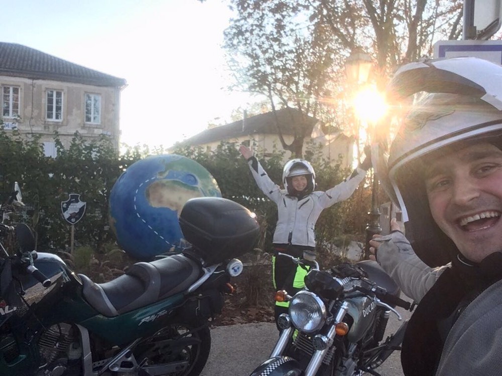 Froid, brouillard, pas grand chose à voir. Pas beaucoup de photos malheureusement mais ce n’est que partie remise. Arrivée à Lectoure où le soleil se montre. En fait nous venions récupérer la vieille moto en révision, celle qui n’avait pas roulé depuis un an. Jalouse de ne pas être partie en voyage, elle se vengeait à notre retour d’une tâche d’huile par terre et d’un rappel de révision. La totale quoi ! Notre italienne a été chouchoutée par les équipes de Patrick Salles, spécialiste Ducati à Lectoure. Des échanges, des conseils, du partage d’expériences de voyage à moto.