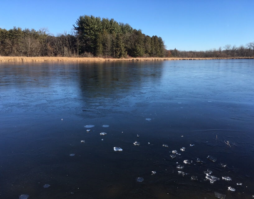 (EN) 🇺🇸 A road trip around Lake Michigan drives us to the Wisconsin countryside. The winter is cool here but today’s sun helps a lot to heat up. The minivan stops by a state park, the lake is frozen and some ice cubes stay on the top without melting. South Wisconsin has many small villages between the straight long roads and the hills covered with corn and wheat.