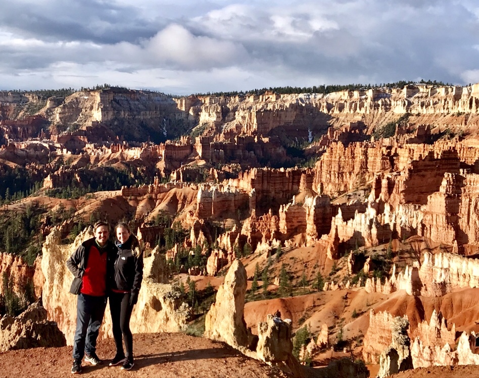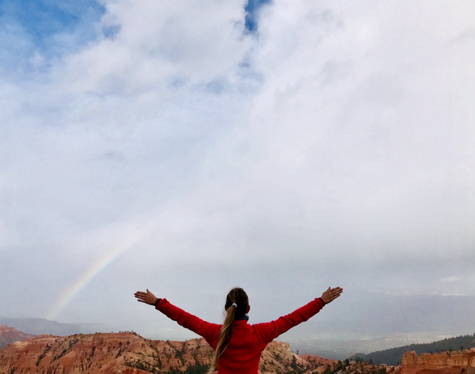 Then Bryce Canyon, at sunset, almost alone, everybody’s gone due to the storm and now a rainbow is coming. Beautiful time together.