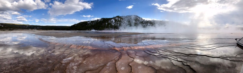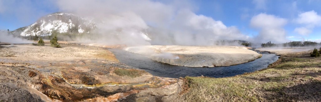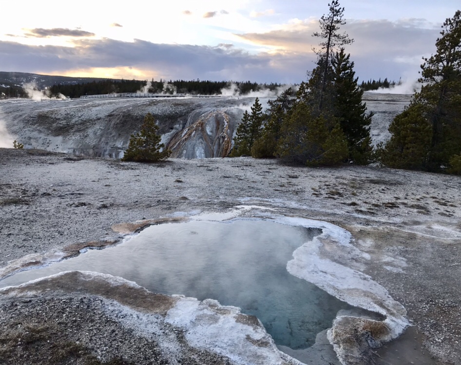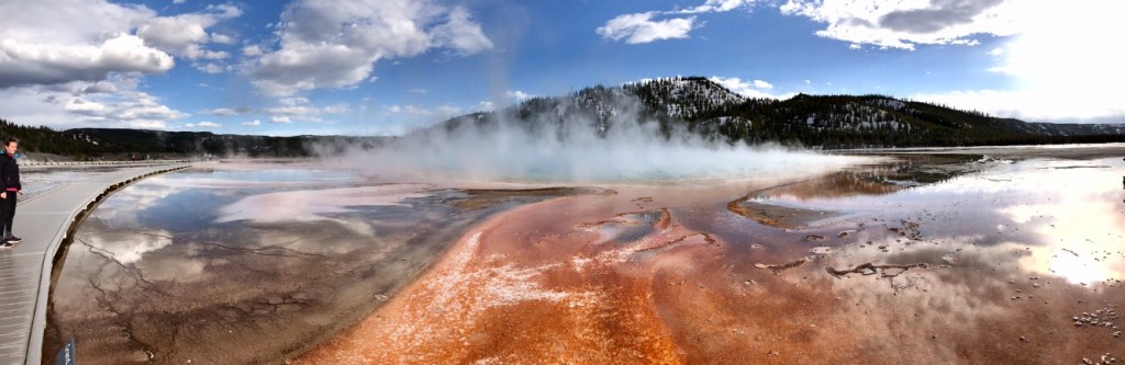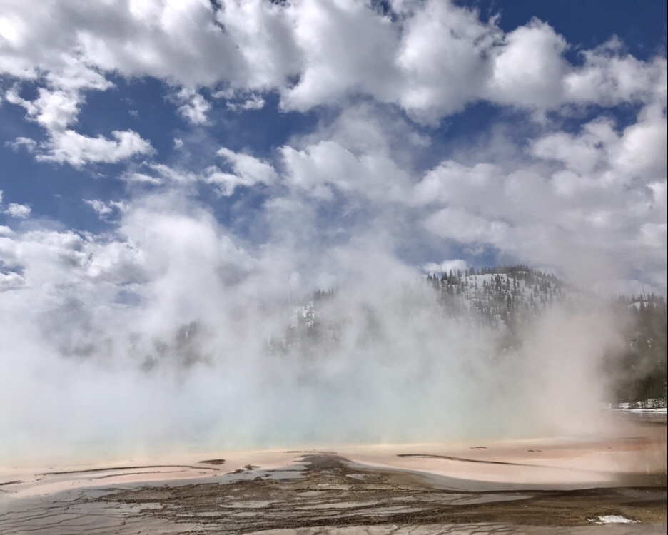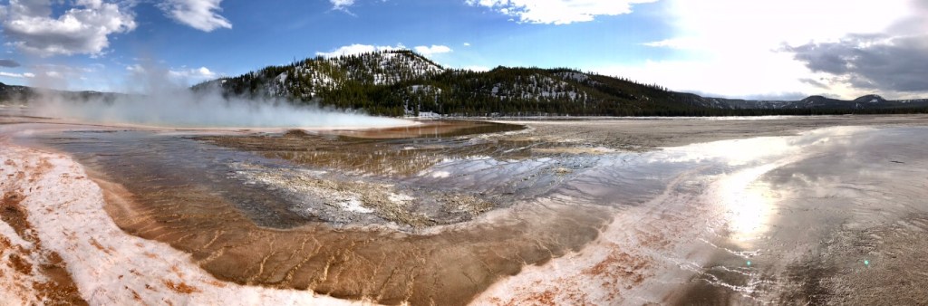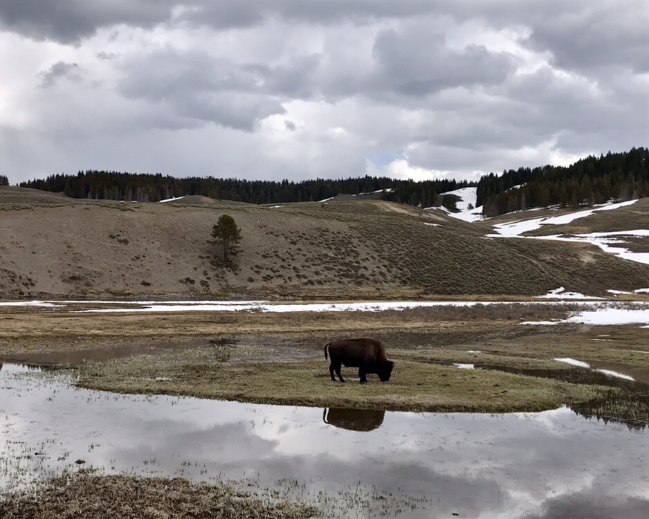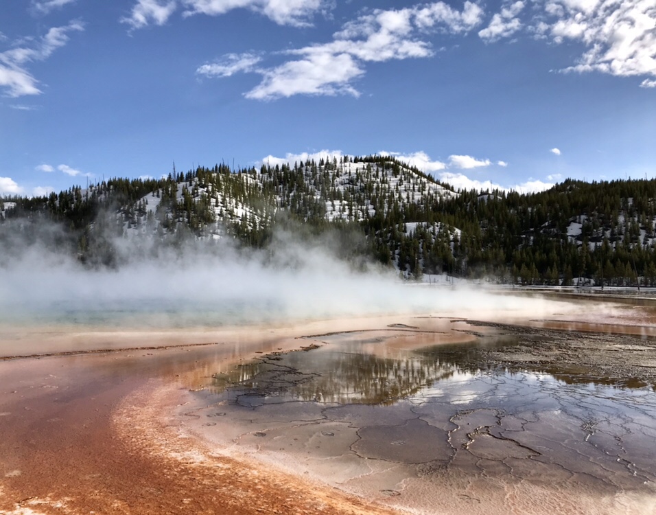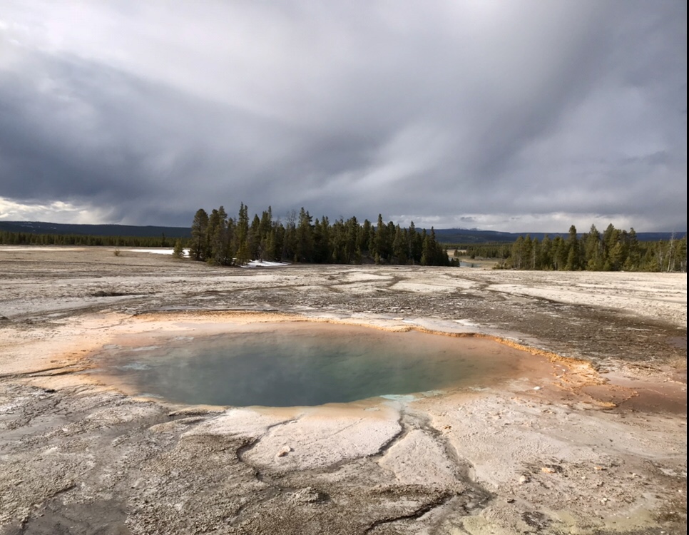 (FR) 🇫🇷 La Terre a quelque chose a nous dire : Yellowstone ! Enfin apres avoir fait ce grand detour on y est. Nous sommes debut mai. Le parc a ouvert il y a quelques jours. Les routes enneigees, les espaces habites par les ours sont fermes, et nous roulons partout ou c’est possible. Pas beaucoup de mots pour le decrire, tant les couleurs, les sons, les odeurs de cet endroit sont uniques.