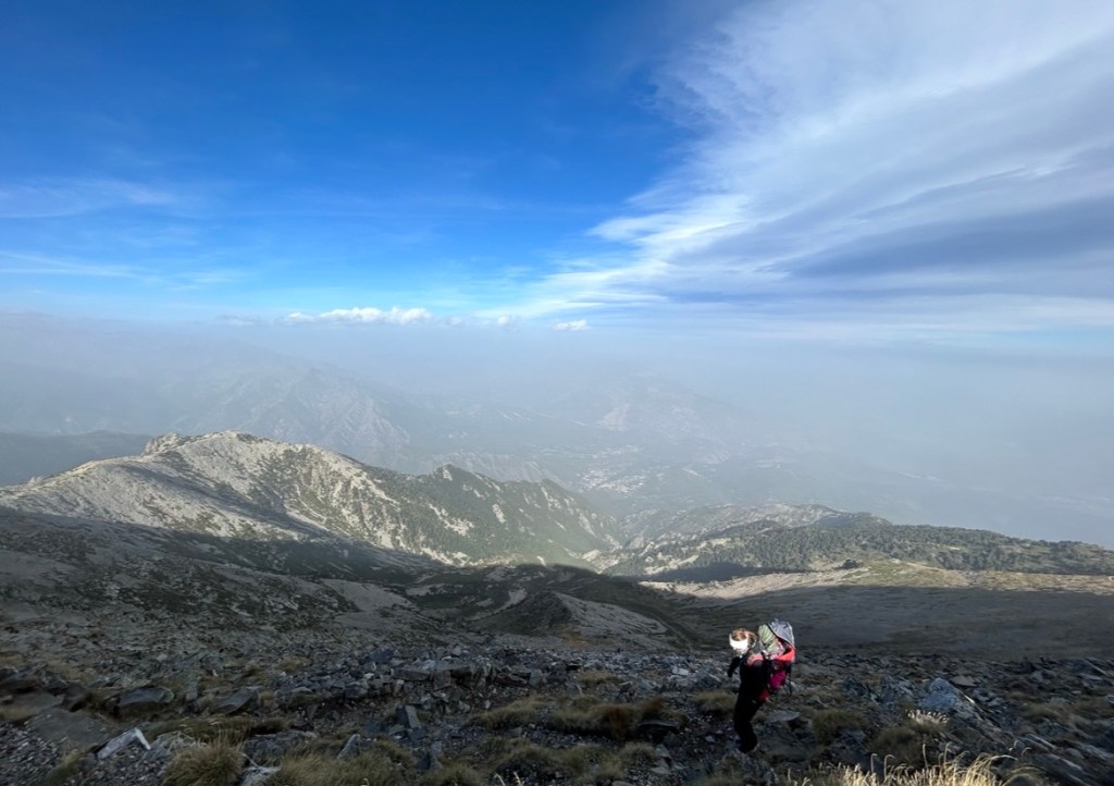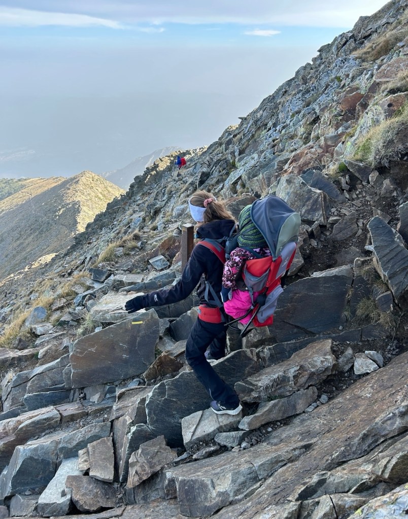 15 kilos sur chaque dos, oubliés grâce à l’émerveillement de cette ascension en famille! D’autant plus que notre fille Gemma, 2 ans, aime sortir du sac de portage et marcher, cela demande du temps, plus pour observer la nature que pour marcher finalement.